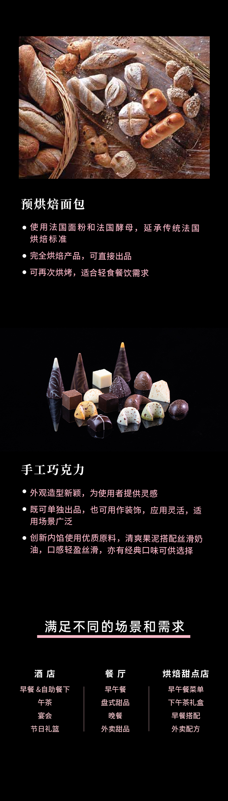 La Rose Noire品牌由Gerard Dubois于1991年在香港创立。 其位于菲律宾的现代化工厂认证资质完备,现有3200多名员工,向5大洲超过57个国家的客户供应700多种烘焙、糕点、巧克力产品:高级酒店集团,国际连锁咖啡品牌,还有私人俱乐部,高级餐厅以及各大航空公司等。为了满足日益更新的市场需求, La Rose Noire坚持创新,每年推出8-10款新品,带动行业水平发展。